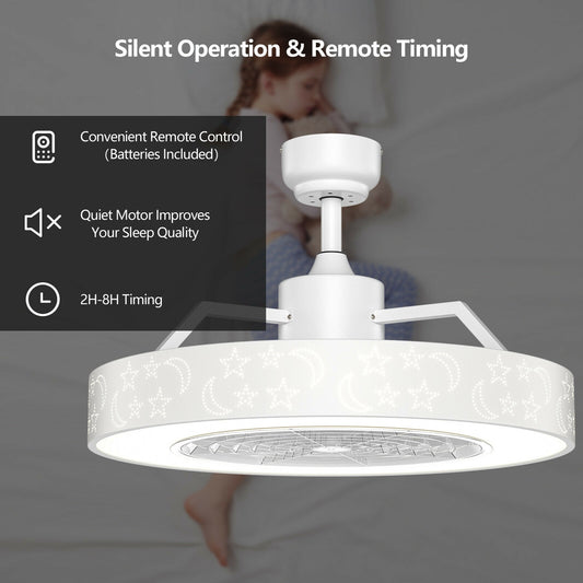 23 Inch Starry Sky Ceiling Fan with Dimmable LED Light & Remote Control – White