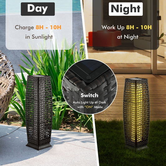2 Pack Solar-Powered Diamond Wicker Floor Lamps with Auto LED Lighting