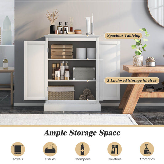 4 Door Freestanding Bathroom & Kitchen Storage Cabinet with Adjustable Shelf