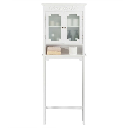 2 Door Over-the-Toilet Storage Cabinet with Adjustable Shelf & Tempered Glass Door