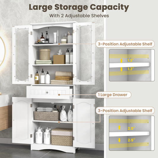 3 Tier Freestanding Bathroom Cabinet with 2 Drawers & Glass Doors for Stylish Storage