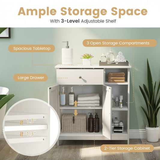 2-Tier Bathroom Storage Cabinet with Adjustable Shelves