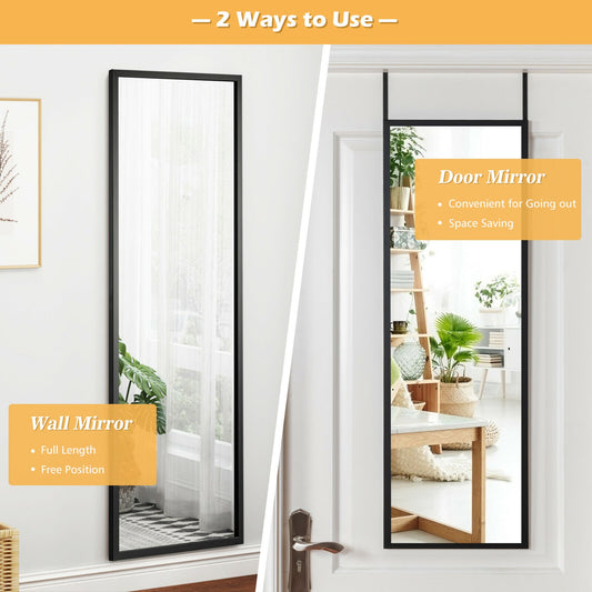 42.5 Inch Full Length Metal Mirror with Adjustable Hooks for Wall or Door Mounting - Black