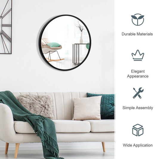 Elegant 16 Inch Round Wall Mirror with Premium Aluminum Alloy Frame - Black