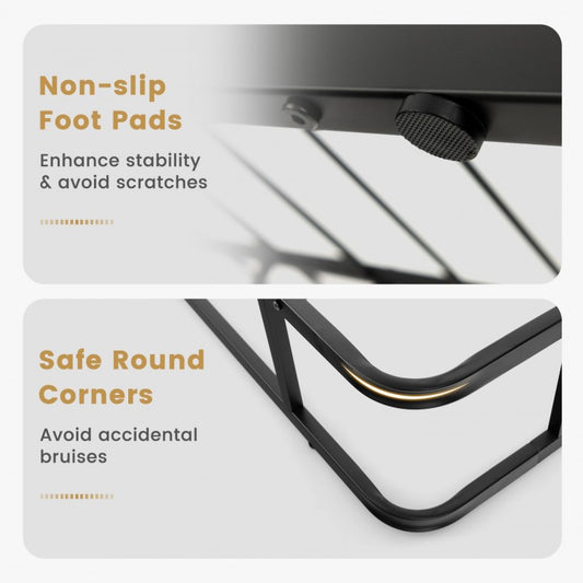 Black Metal Bed Frame with Slatted Base and Elevated Headboard, Queen Size