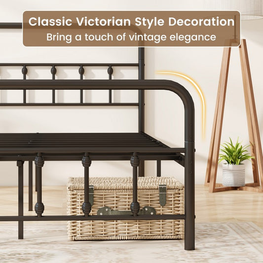 Victorian Style Metal Bed Frame with Headboard and 12.5" Underbed Storage – Queen Size