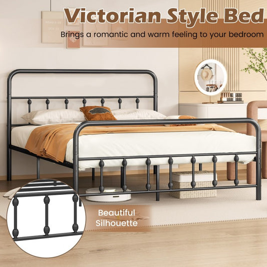 Victorian Style Metal Bed Frame with Headboard and 12.5" Underbed Storage – Full Size