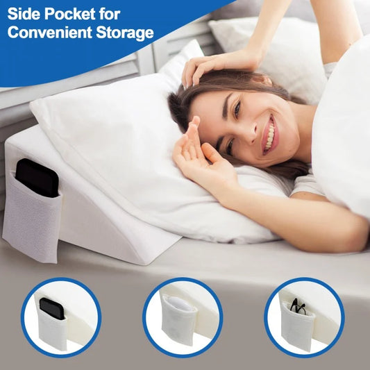Multi-Purpose Bed Wedge Pillow with Convenient Storage Pocket