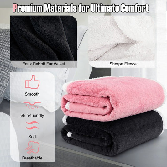 Luxurious Double-Sided Shaggy Fur & Velvet Throw Blanket - 88 x 77 Inches, Machine Washable