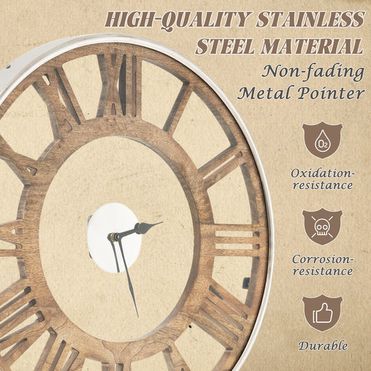 27.5 Inch Rustic Wooden Wall Clock with Roman Numerals - Silent Battery Operated