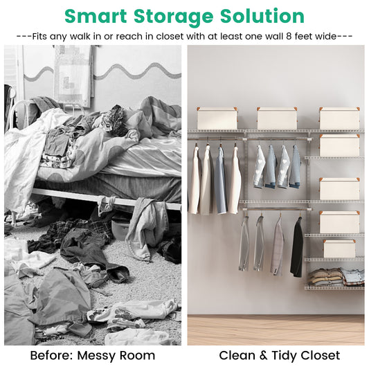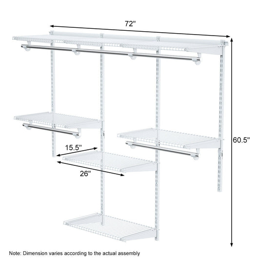 Adjustable Wall-Mounted Closet Organizer System - 3 to 6 Feet with Shelves, Hang Rods & Customizable Storage Solution
