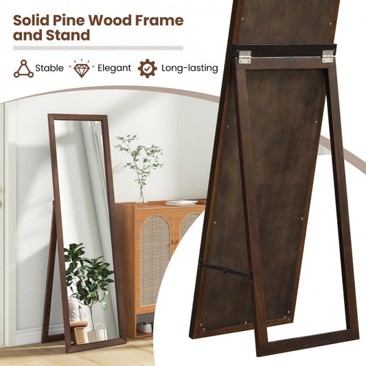 Premium Full Length Mirror with Solid Pine Wood Frame and Stand – 18 x 14 x 61 inches