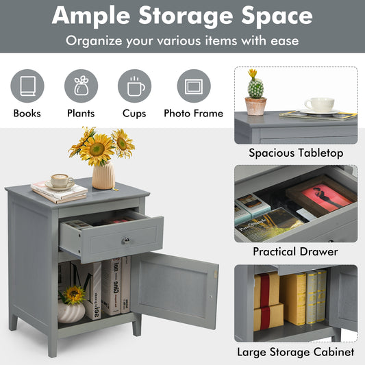 2-Tier Wood Accent Table with Drawer and Cabinet Storage in Grey Finish
