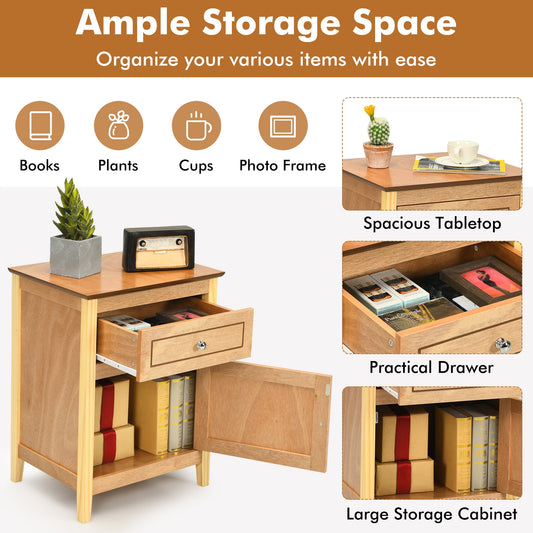 2-Tier Wood Accent Table with Drawer and Cabinet Storage in Natural Finish