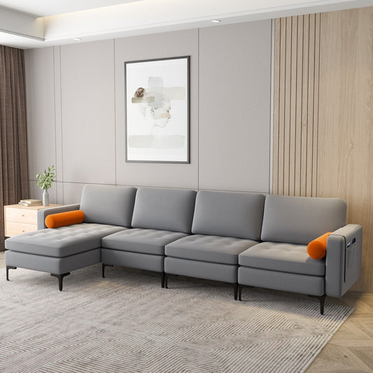 Modular L-Shaped Sectional Sofa with Reversible Ottoman, USB Ports, and Storage in Grey