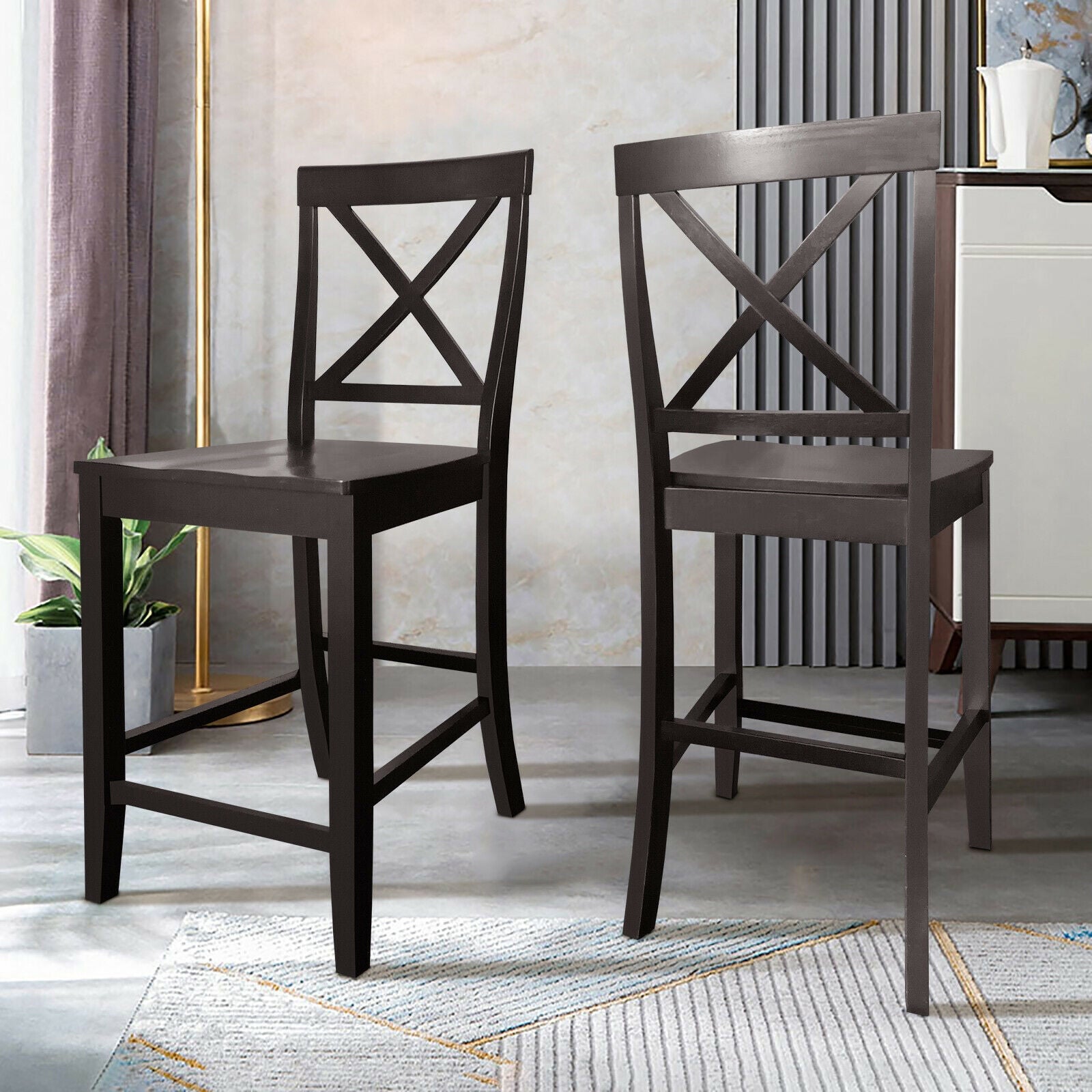24 Inch Kitchen Chairs with Rubber Wood Frame and Comfortable Seat, Set of 2
