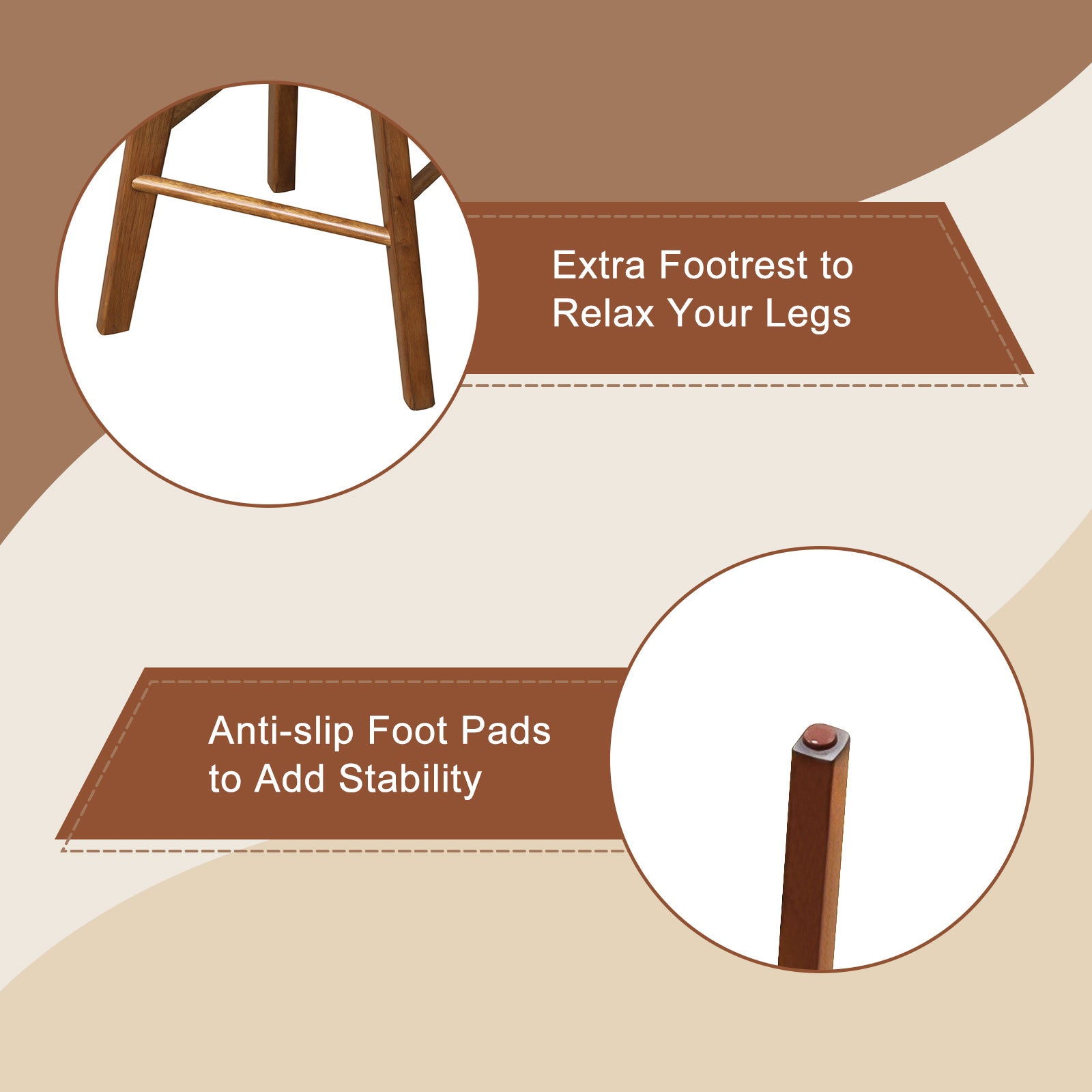 Durable Rubber Wood Frame: Constructed with solid rubber wood, the stool frame is built for strength and durability. Each stool supports up to 330 lbs of weight, ensuring reliable use over time. The sturdy legs also feature a rich brown finish for a warm, classic look.