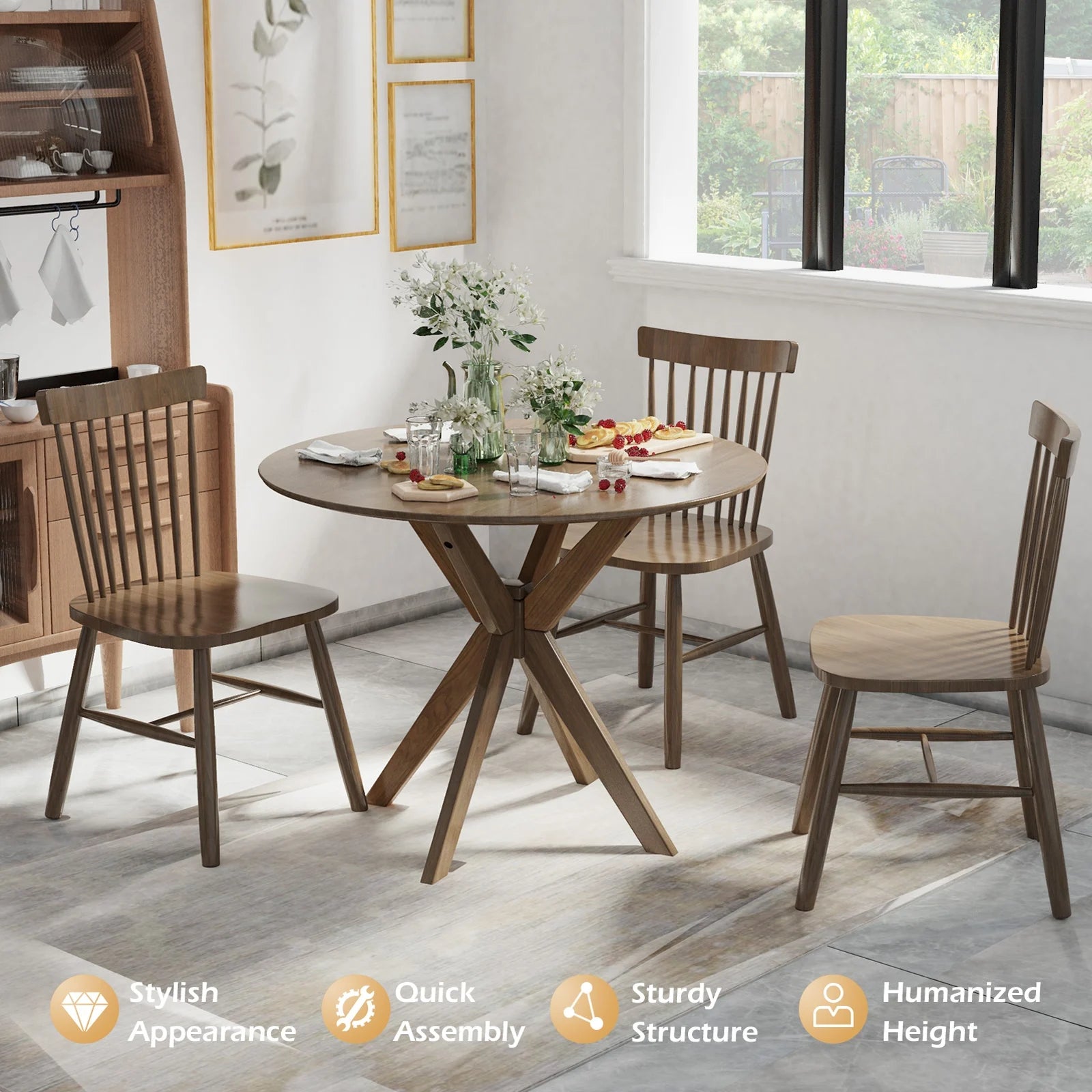 This 36-inch round dining table brings vintage charm and solid functionality to your dining area, café, or office space. Featuring a spacious tabletop, unique intersecting pedestal base, and sturdy rubber wood legs, it comfortably accommodates the whole family while ensuring long-lasting durability. With easy maintenance and quick assembly, this table blends style with everyday practicality for both residential and commercial settings.