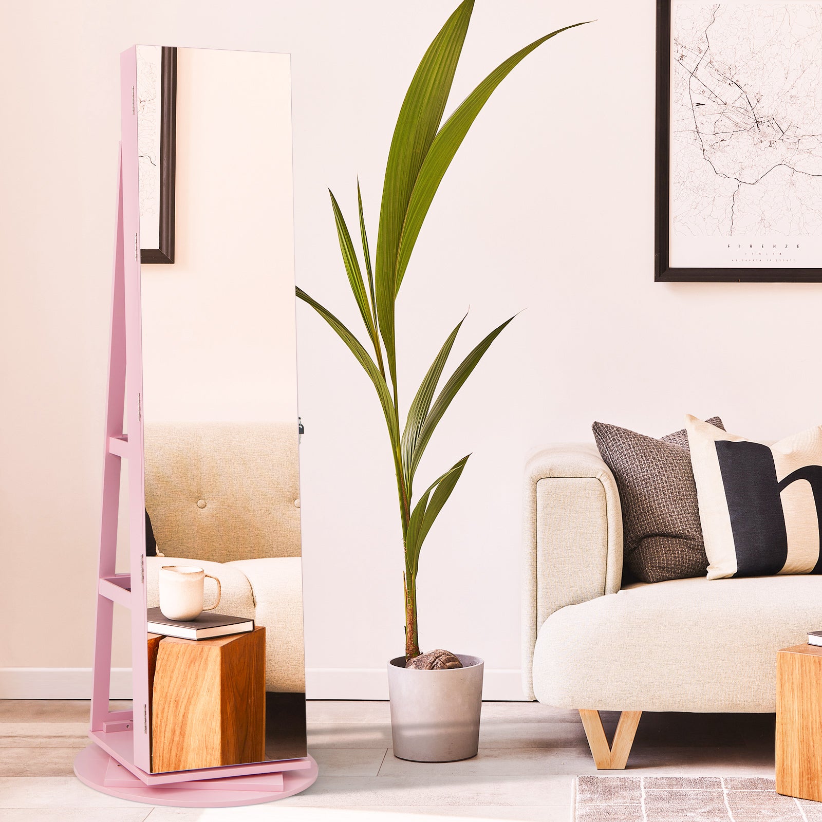 360° Rotating Jewelry Armoire with LED Mirror and Lockable Storage – Pink