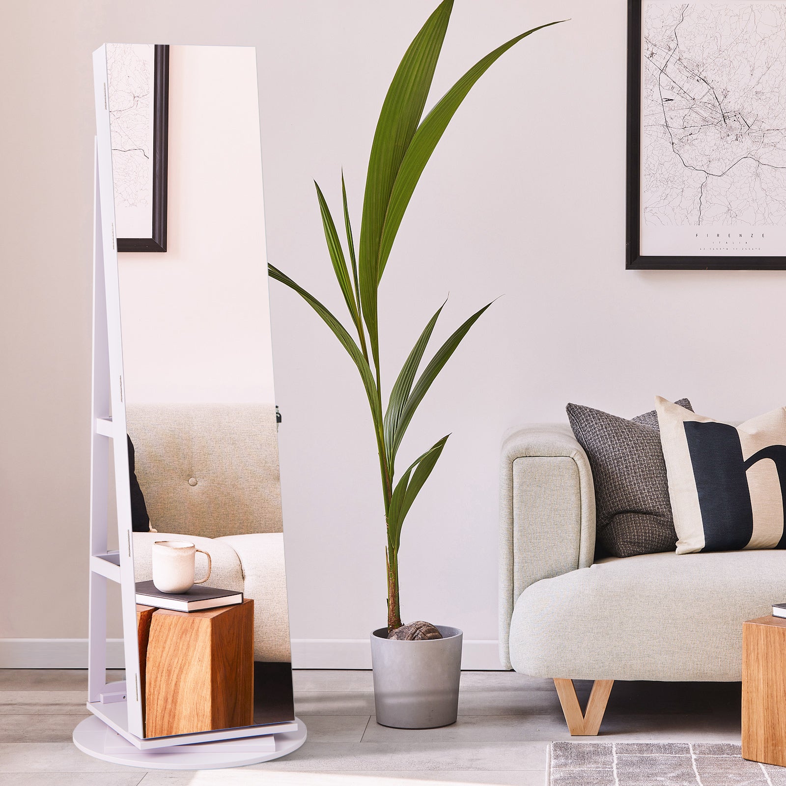 Higher Full Length Mirror Jewelry Armoire: The extended mirror measuring 61 inches in length and 14.5 inches in width gives a true full-body view, making outfit checks easy and accurate. This combination of mirror and storage in one tall structure maximizes utility without sacrificing floor space.