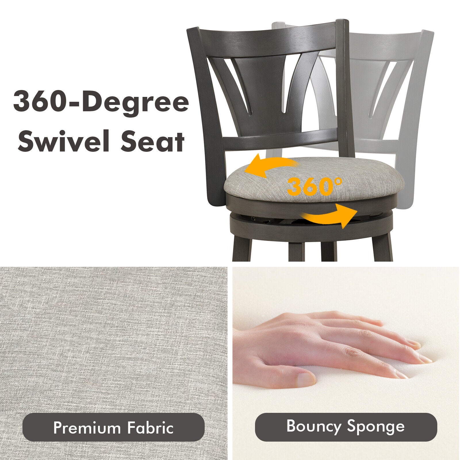 360° Swivel Bar Stool with Soft Cushioned Seat Backrest and Footrest - 26.5 Inch