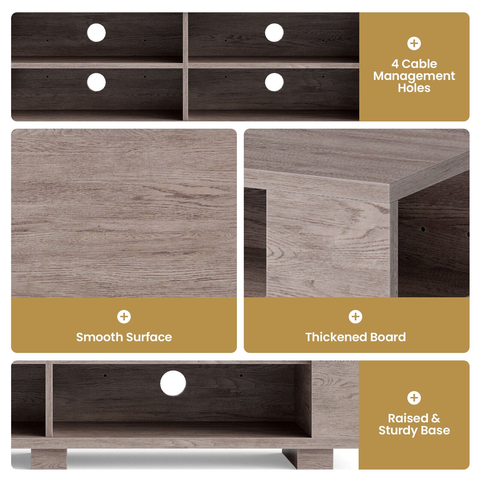 Four Threading Holes: Equipped with four large cable management holes at the back, the TV stand keeps wires organized and hidden. These holes also promote ventilation and heat dissipation, protecting your electronic devices like set-top boxes, stereos, and gaming consoles.