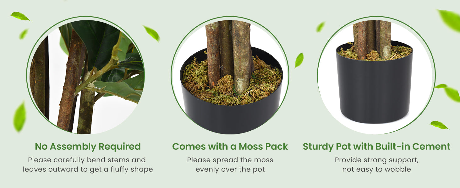 No Assembly Required: Upon receiving the tree, simply adjust the leaves to your desired angle. No assembly or additional tools are required.