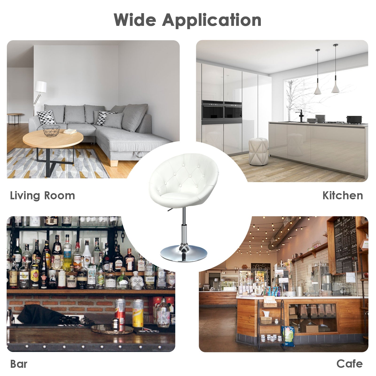 Multi-Purpose: The Round Tufted Back Accent Barstool serves as a dining chair, accent chair, or office chair. It is suitable for various spaces including bar counters, living rooms, dining rooms, and shops.