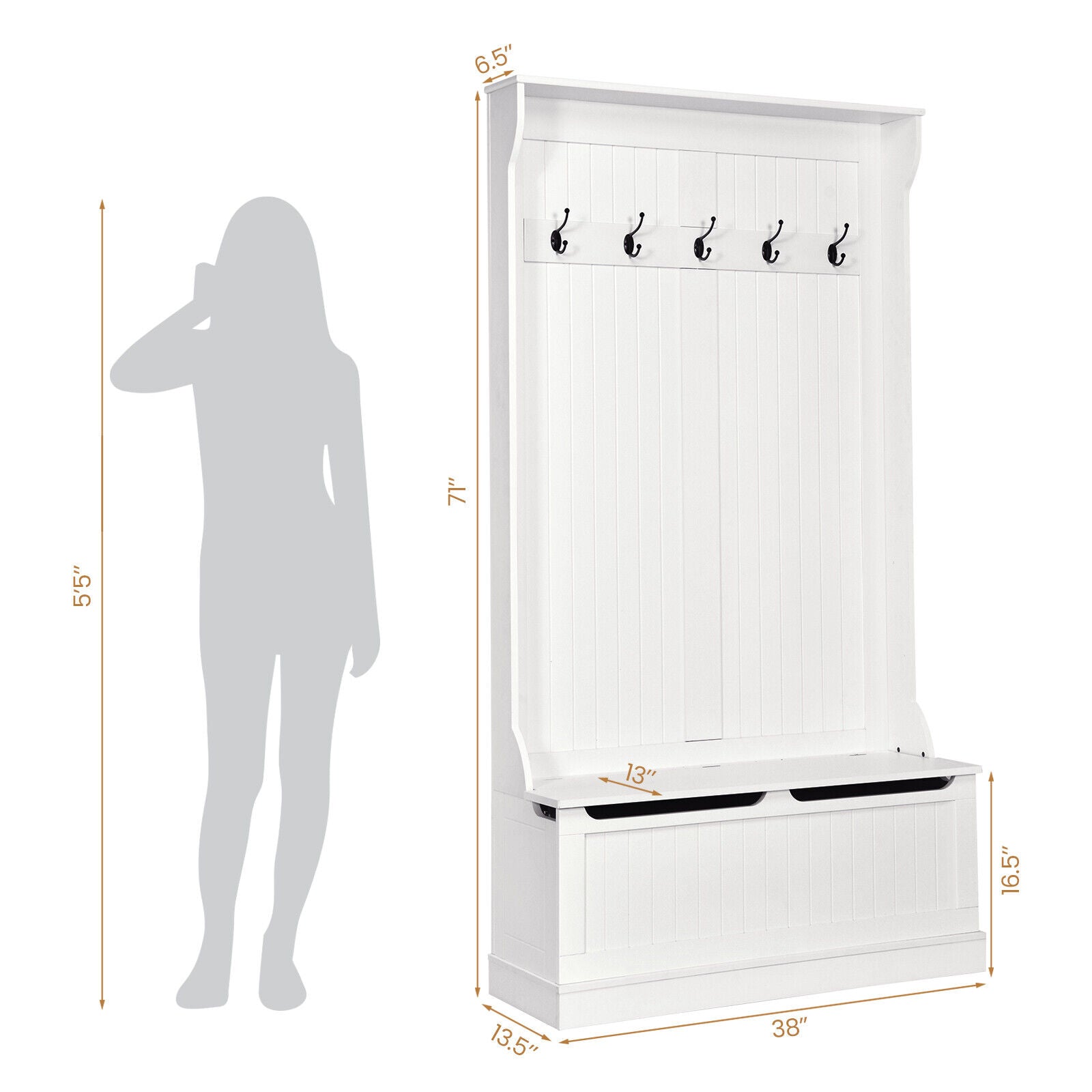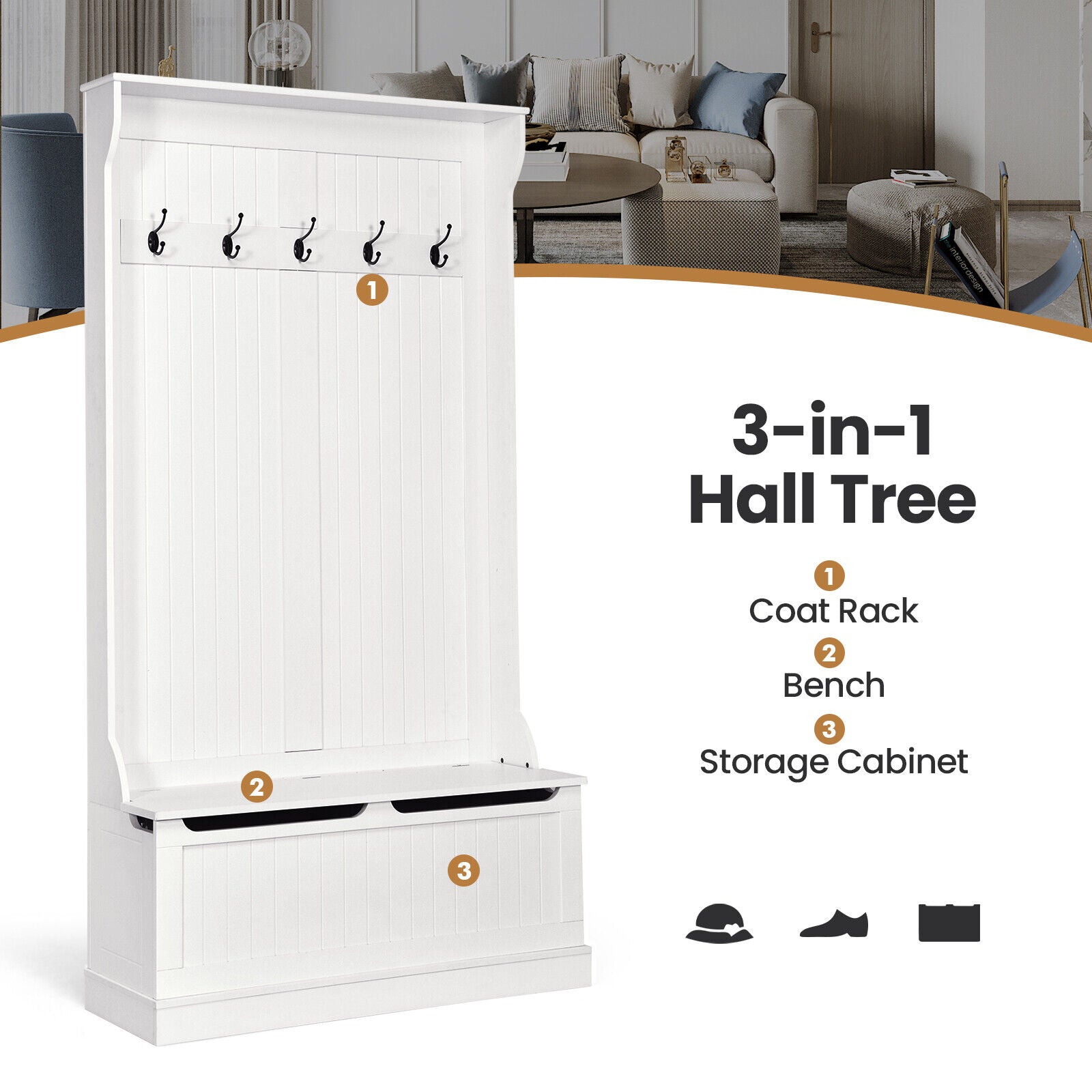 All-in-One Hall Tree with Shoe Bench Coat Hooks and Enclosed Storage