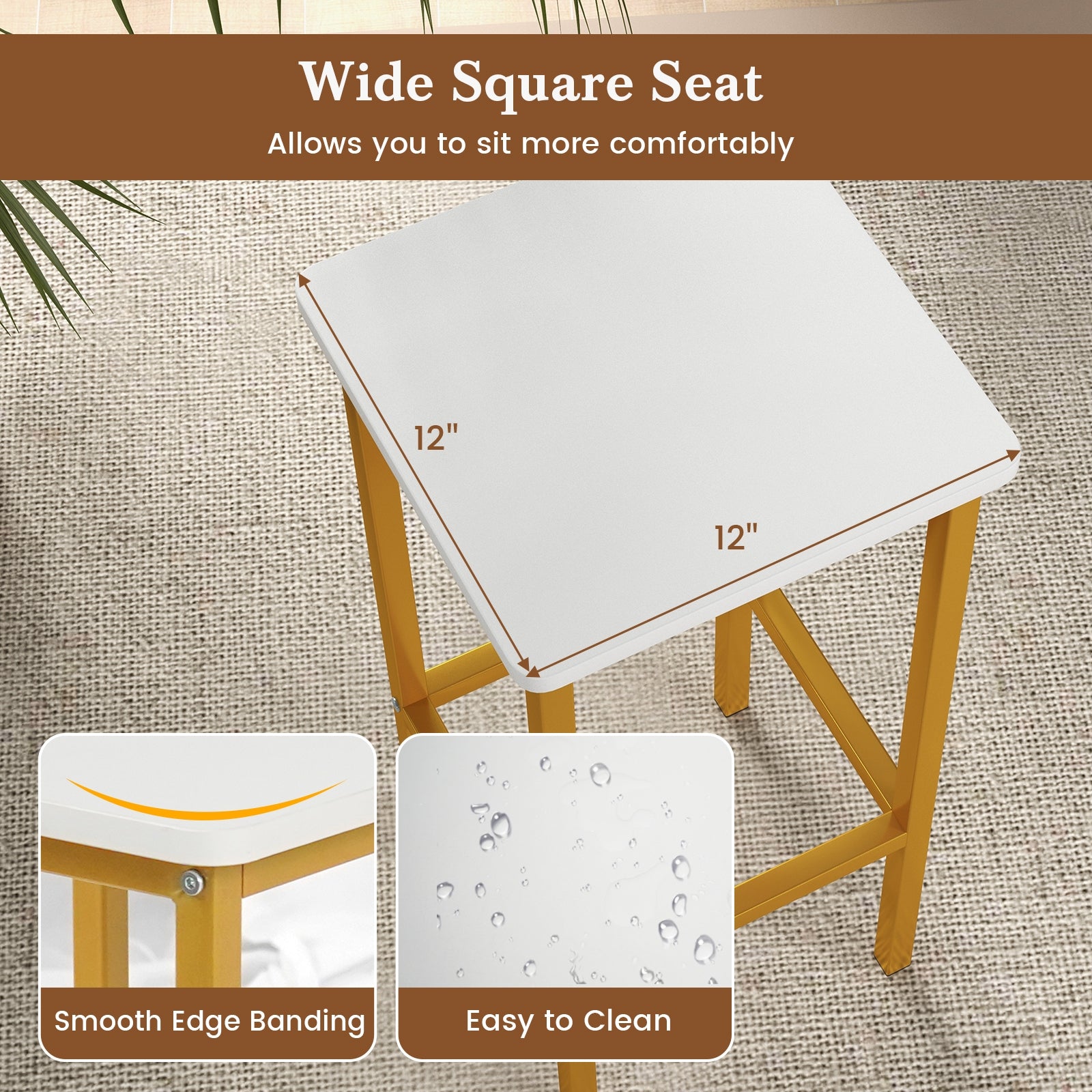 Comfy Seat and Footrest: Each stool includes a square seat that provides a smooth and spacious surface for comfortable sitting. The integrated 9 inch footrest offers a relaxing place to rest your legs, enhancing the overall seating experience.