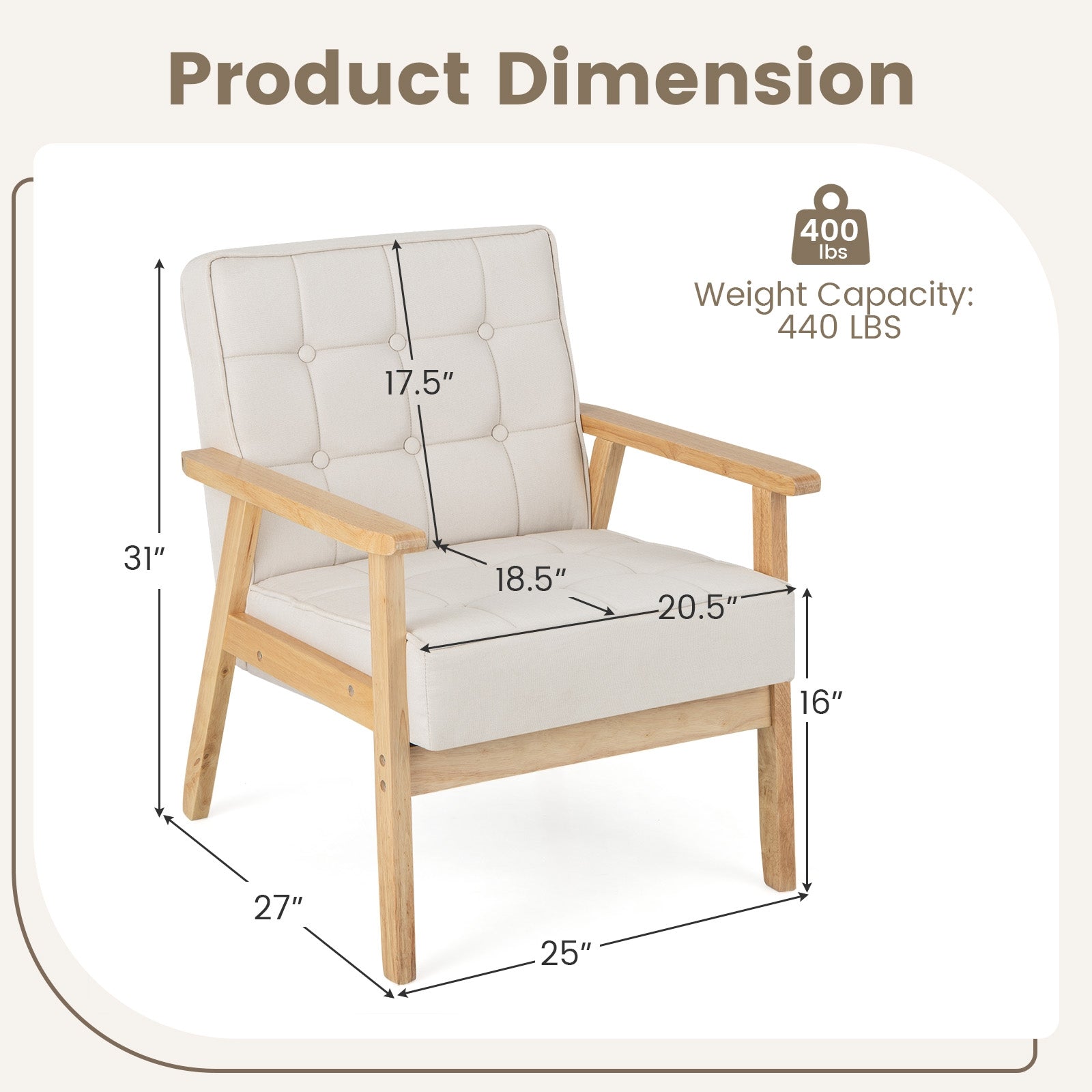 Comfy Accent Chair with Wood Armrests and Upholstered Seat - Beige