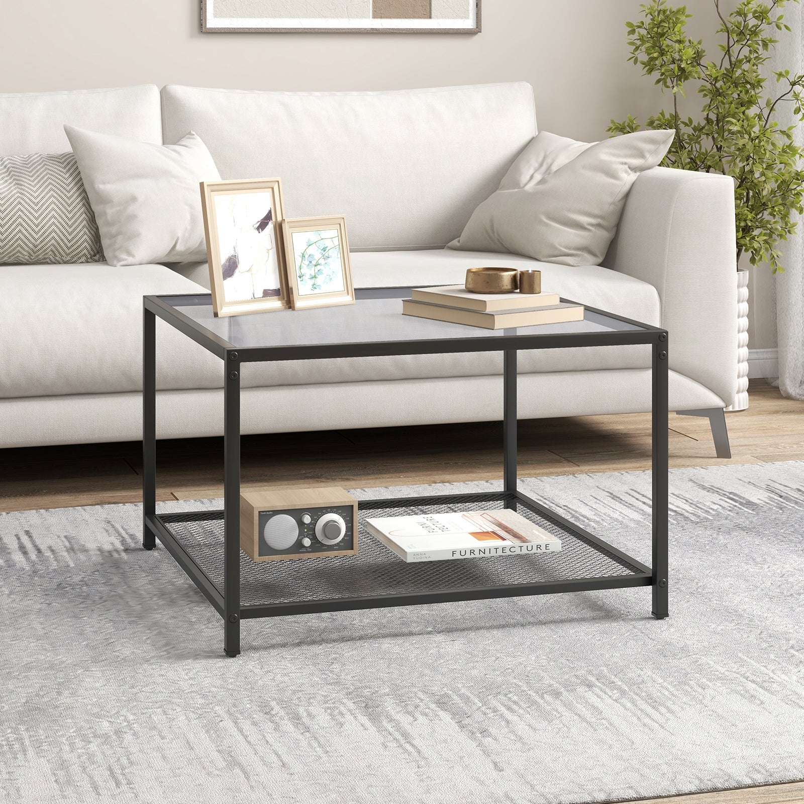 Elevate your modern interior with this 2-tier glass coffee table, designed to blend contemporary style with practical functionality. Featuring a thick tempered glass top, rustproof metal frame, and spacious storage shelf, this table offers a durable solution for organizing essentials in the living room, bedroom, or office. Its minimalist design and compact square profile make it a versatile centerpiece for any space.