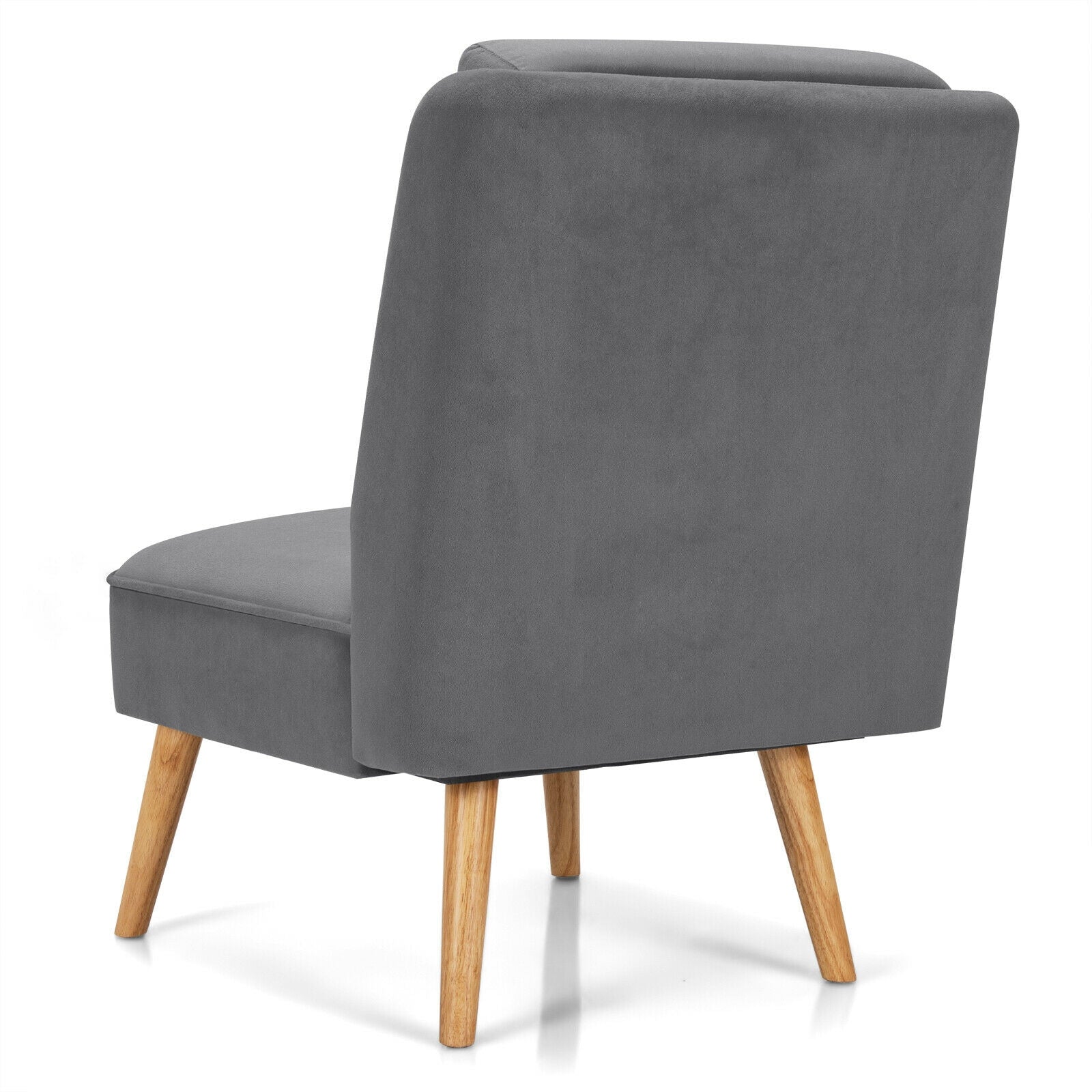 Contemporary Armless Velvet Accent Chair with Rubber Wood Base - Grey