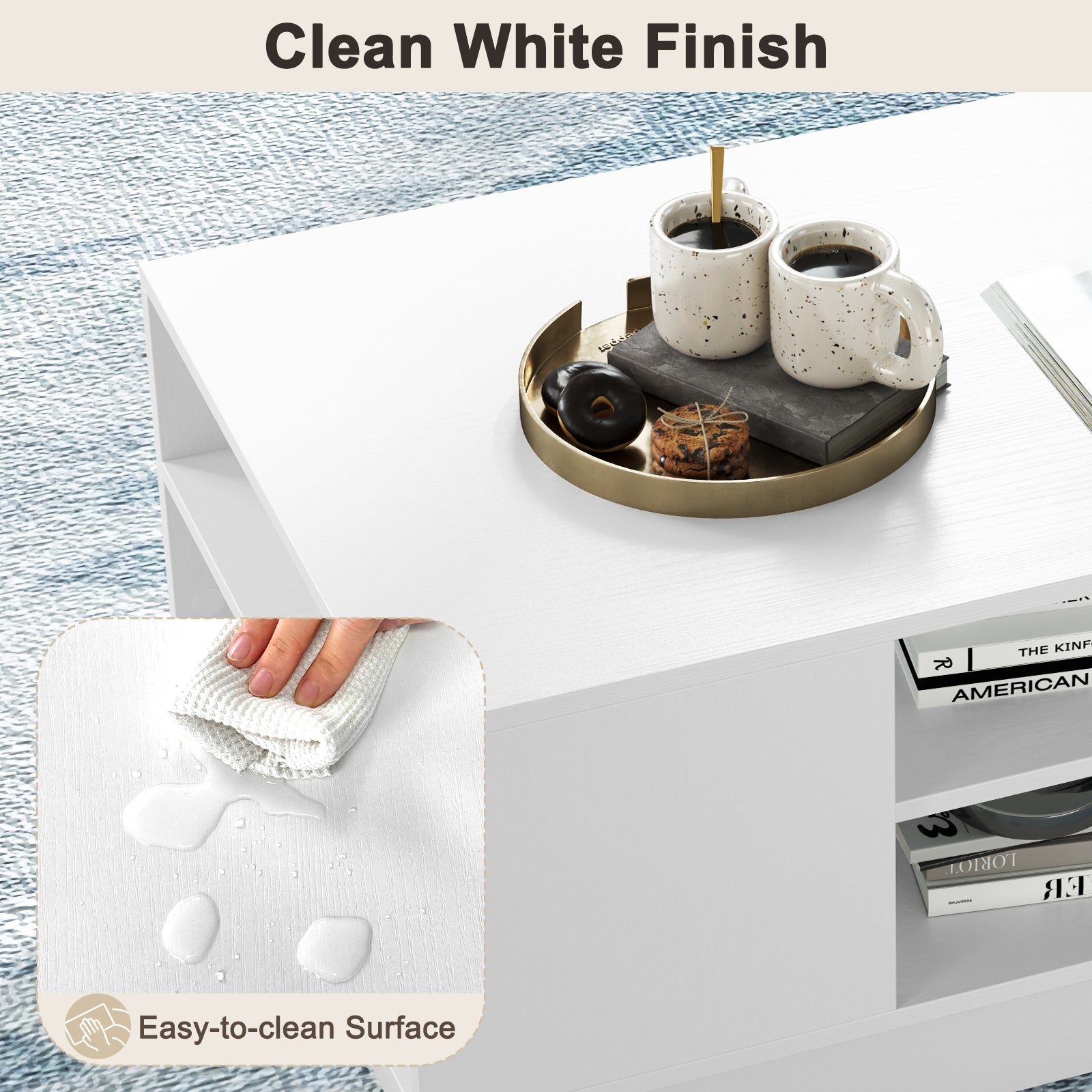 Dual-Tier Storage: This coffee table includes two open compartments that provide generous storage space for magazines, books, or display items. The open design ensures easy access and adds depth to your living room decor.