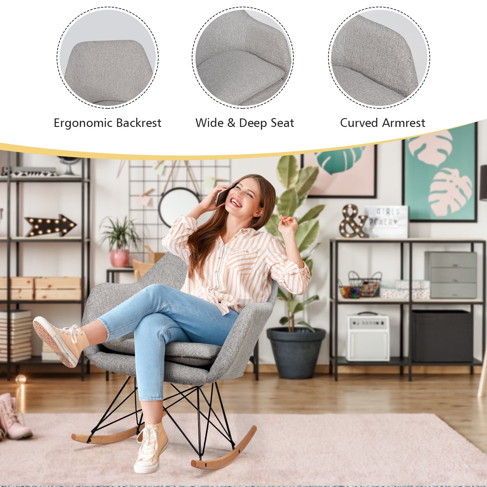 Contemporary Linen Rocking Chair with Padded Seat and Beech Wood Legs