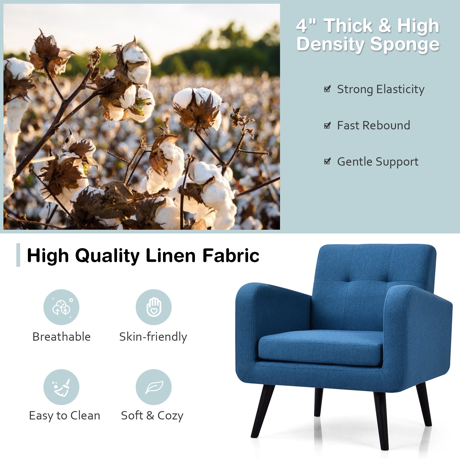 Combining comfort, elegance, and durability, this accent chair is designed to elevate your living space. Crafted with a breathable linen cover, thick sponge padding, and sturdy rubberwood legs, it ensures both style and support. The tufted back adds a refined touch, making it suitable for various settings such as the living room, bedroom, office, or studio. Its ergonomic design encourages relaxation while maintaining timeless charm.