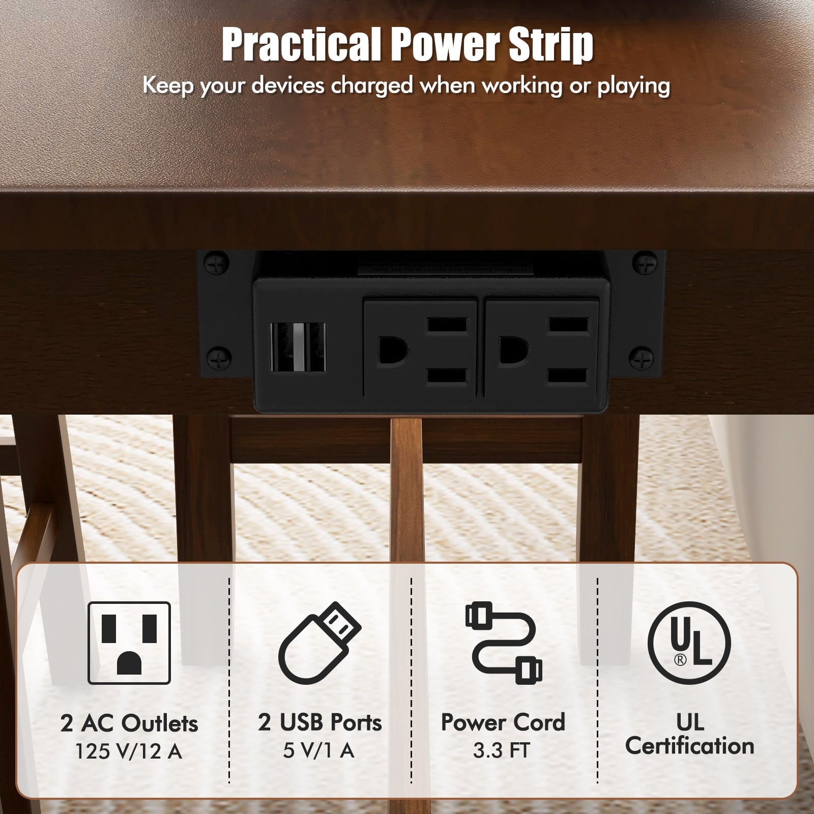 Built-In Power Strip: Equipped with 2 AC outlets (125 V/12 A) and 2 USB ports (5 V/1 A) on the table’s side for easy charging of phones, tablets, and other devices. The power cord length is 3.3 feet (100 cm), and all ports have UL certification for safety.