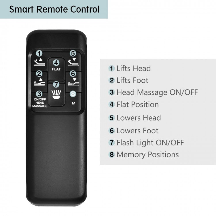 Electric Adjustable Bed Frame with Head Massage & Wireless Remote Control