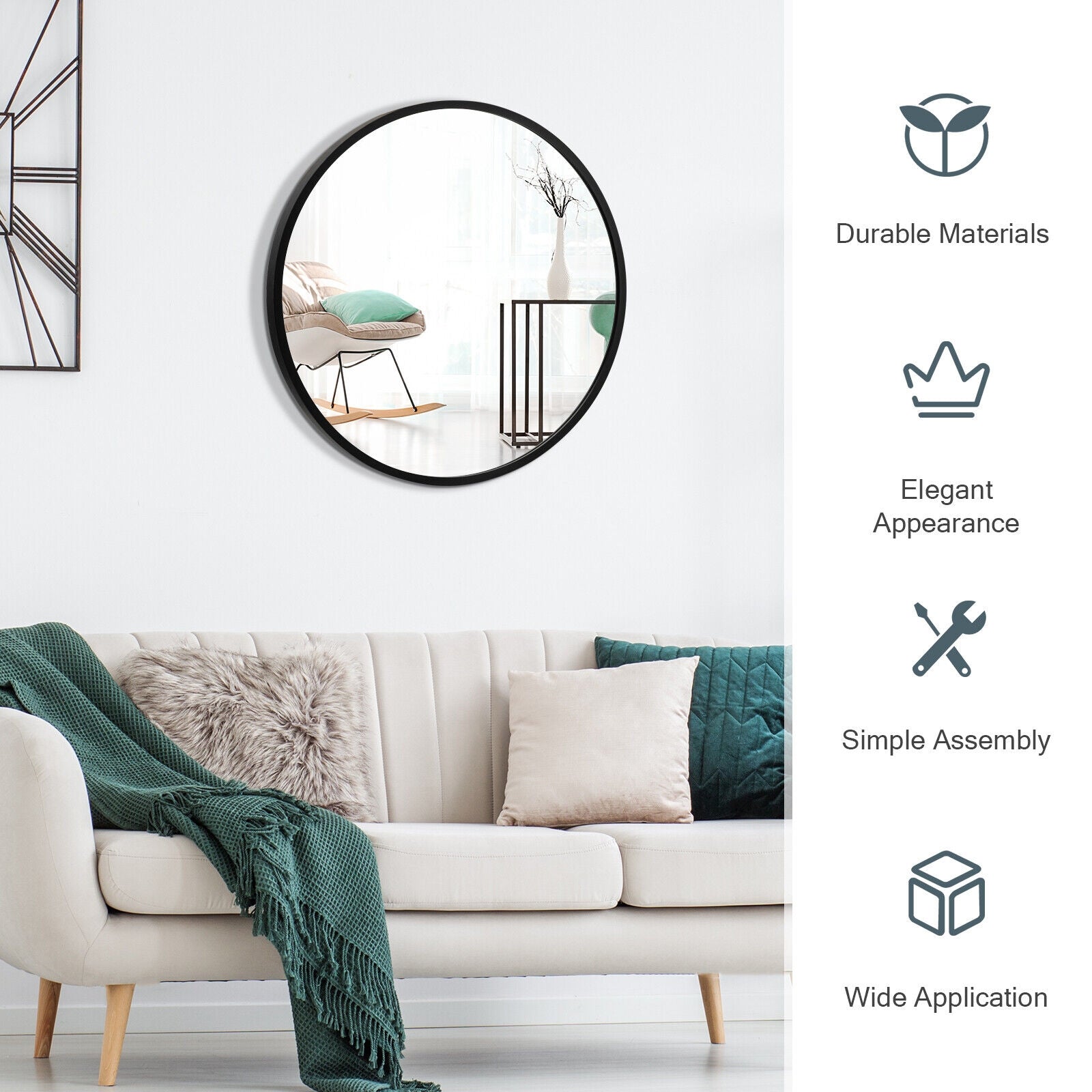Wide Application: Its versatile design makes it suitable for a variety of settings, including bathrooms, living rooms, bedrooms, or entryways. This round mirror brings charm and style to any room or space.