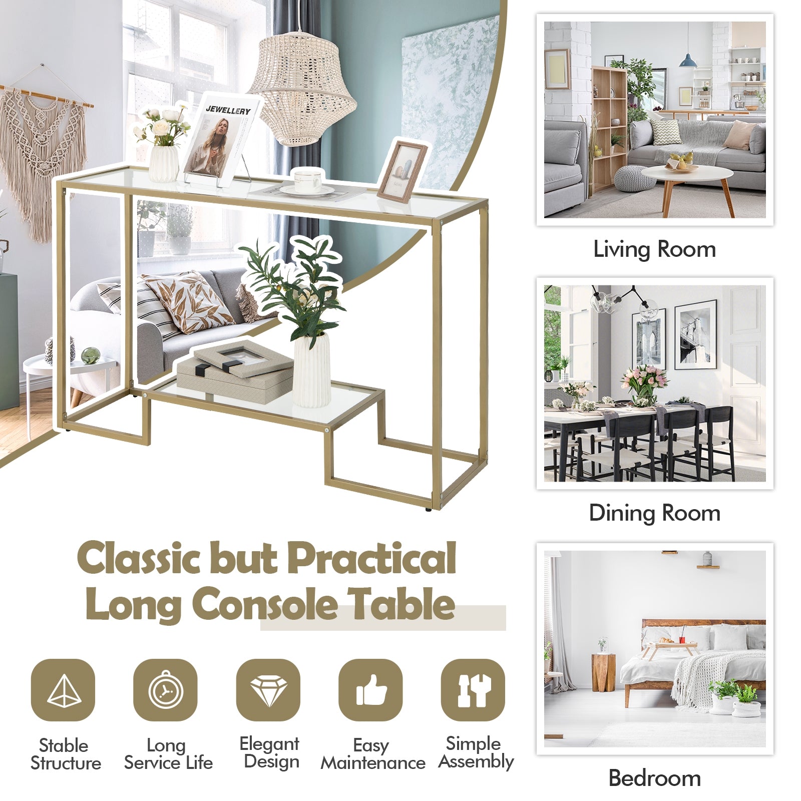 Elegant 48 Inch Gold Frame Console Table with Two Glass Shelves for Stylish Hallway Storage