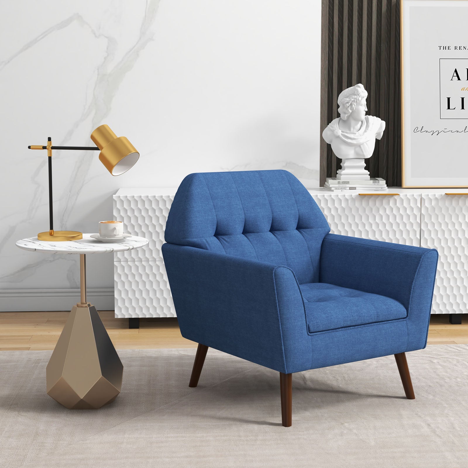 Elegant Tufted Accent Chair with Solid Wood Frame in Blue
