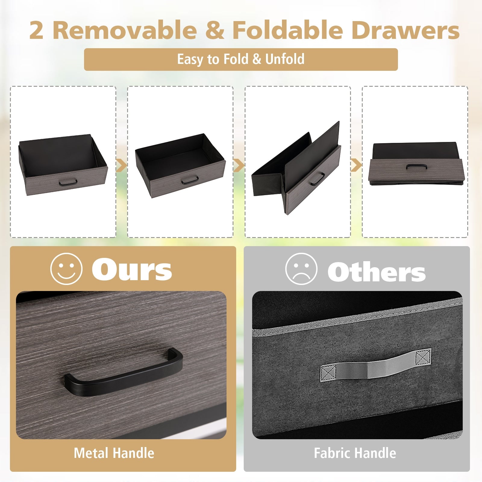 2 Folding Fabric Drawers: Equipped with two 18" x 12" x 5" (L x W x H) fabric drawers, this table provides discreet storage for personal items like documents or clothing. The drawers are designed for quick setup and can be folded for compact storage when not in use, offering practical flexibility for changing needs.