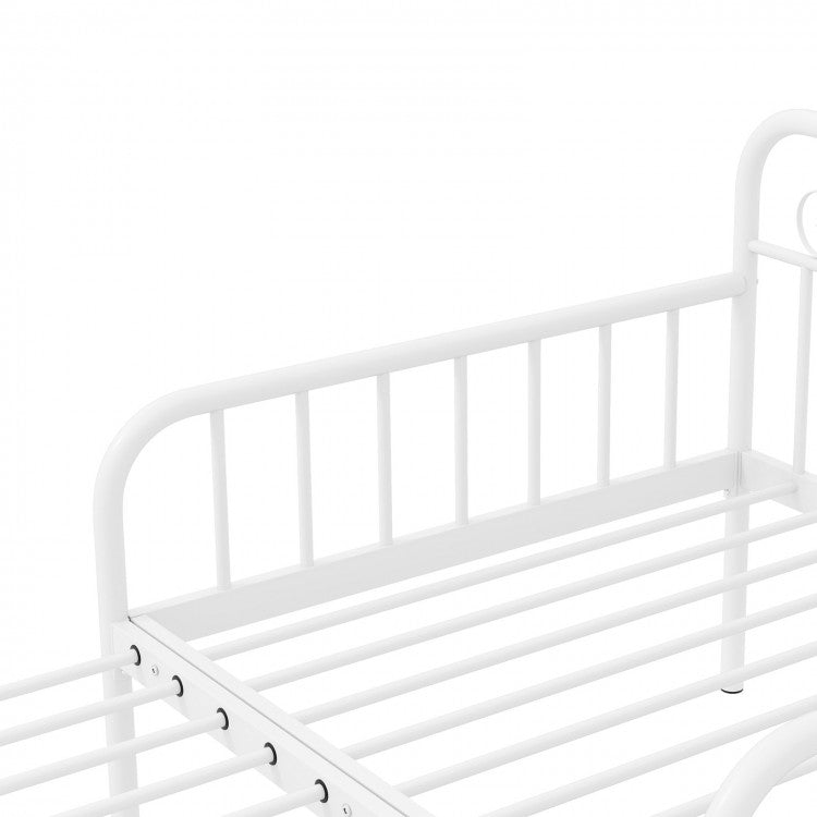 Expandable White Metal Daybed with Guardrails & Armrests, Converts to Twin Size Bed