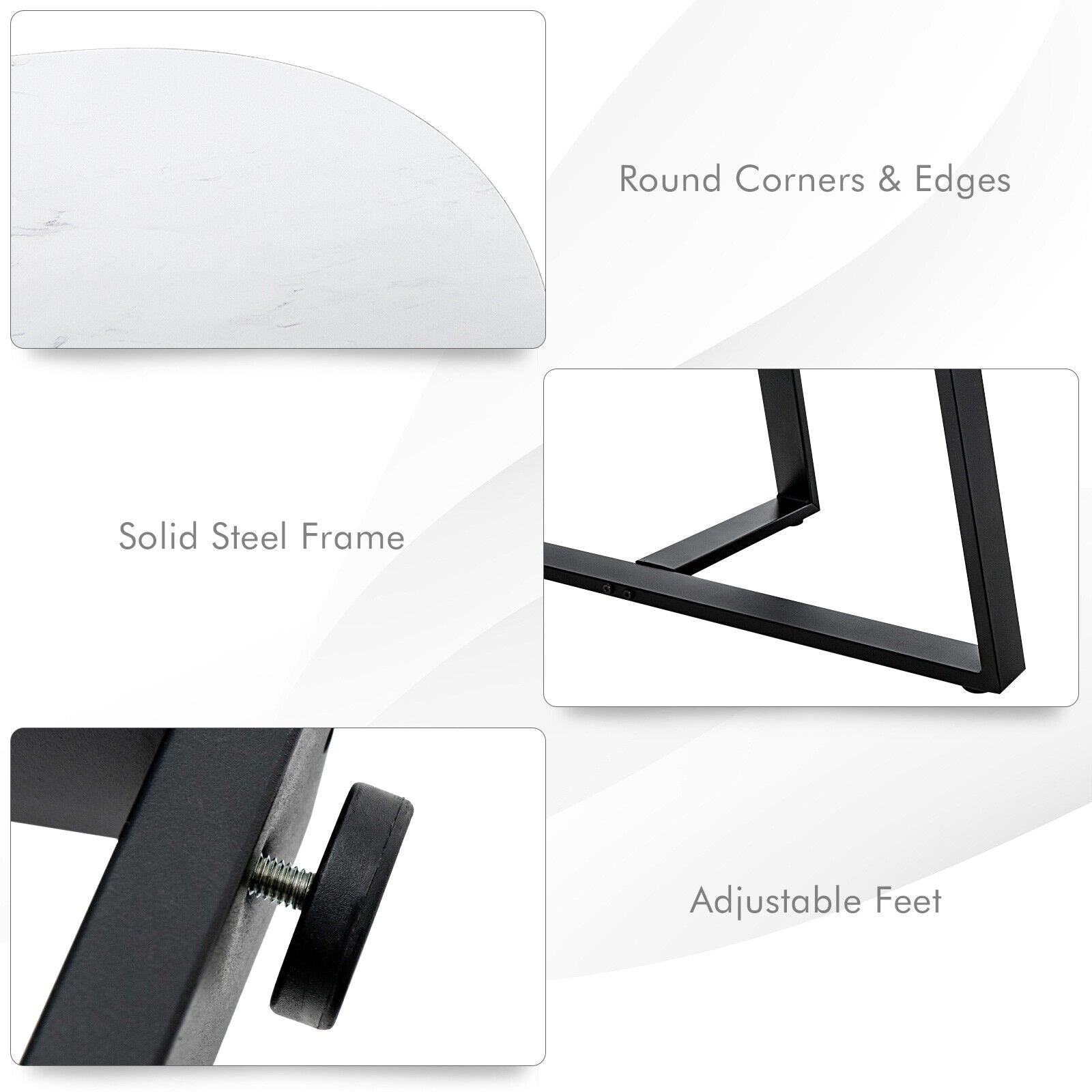 Sturdy Frame with Adjustable Feet: Constructed with high-quality MDF boards and reinforced steel legs, this table set offers strong support and long-lasting durability. The large table supports up to 110 pounds, and the small table holds up to 44 pounds. Adjustable foot pads keep the tables level and stable, even on uneven floors.