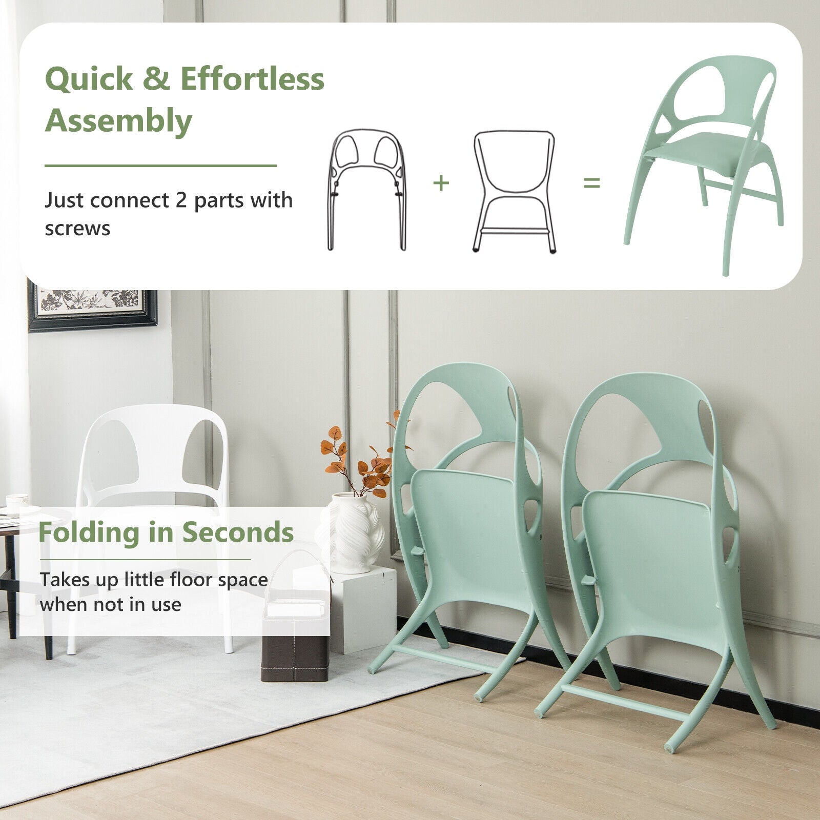 Designed for comfort and practicality, this set of 2 plastic folding dining chairs is the perfect addition to your home or office. Made from premium PP material, these chairs feature a durable construction with a high backrest and curved armrests for ultimate relaxation. They are easy to fold, nest for storage, and can be used both indoors and outdoors. Ideal for family gatherings, parties, or outdoor events, these chairs offer great comfort and functionality, all while protecting your floors from damage.