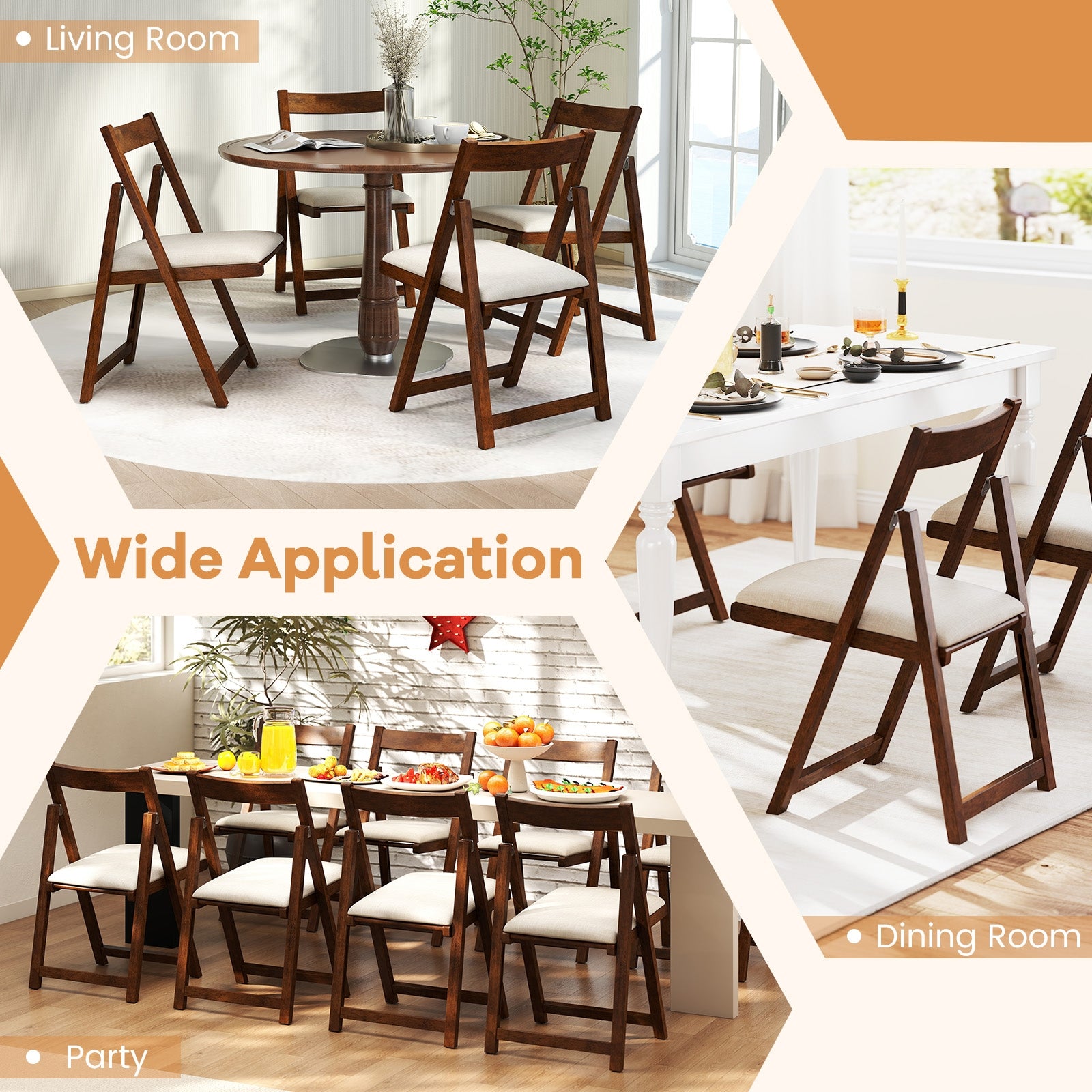 Experience comfort and convenience with this set of 4 folding dining chairs designed for long-lasting use. Each chair features a soft sponge cushion wrapped in wear-resistant, skin-friendly linen fabric for easy care and gentle touch. The curved hollowed backrest offers lumbar support while promoting breathability for cool seating. Crafted with a sturdy rubber wood frame and reinforced with a crossbar, these chairs provide exceptional stability and support up to 330 lbs. Their lightweight foldable design allows for compact storage and effortless mobility, making them perfect for any dining area, kitchen, or restaurant setting.