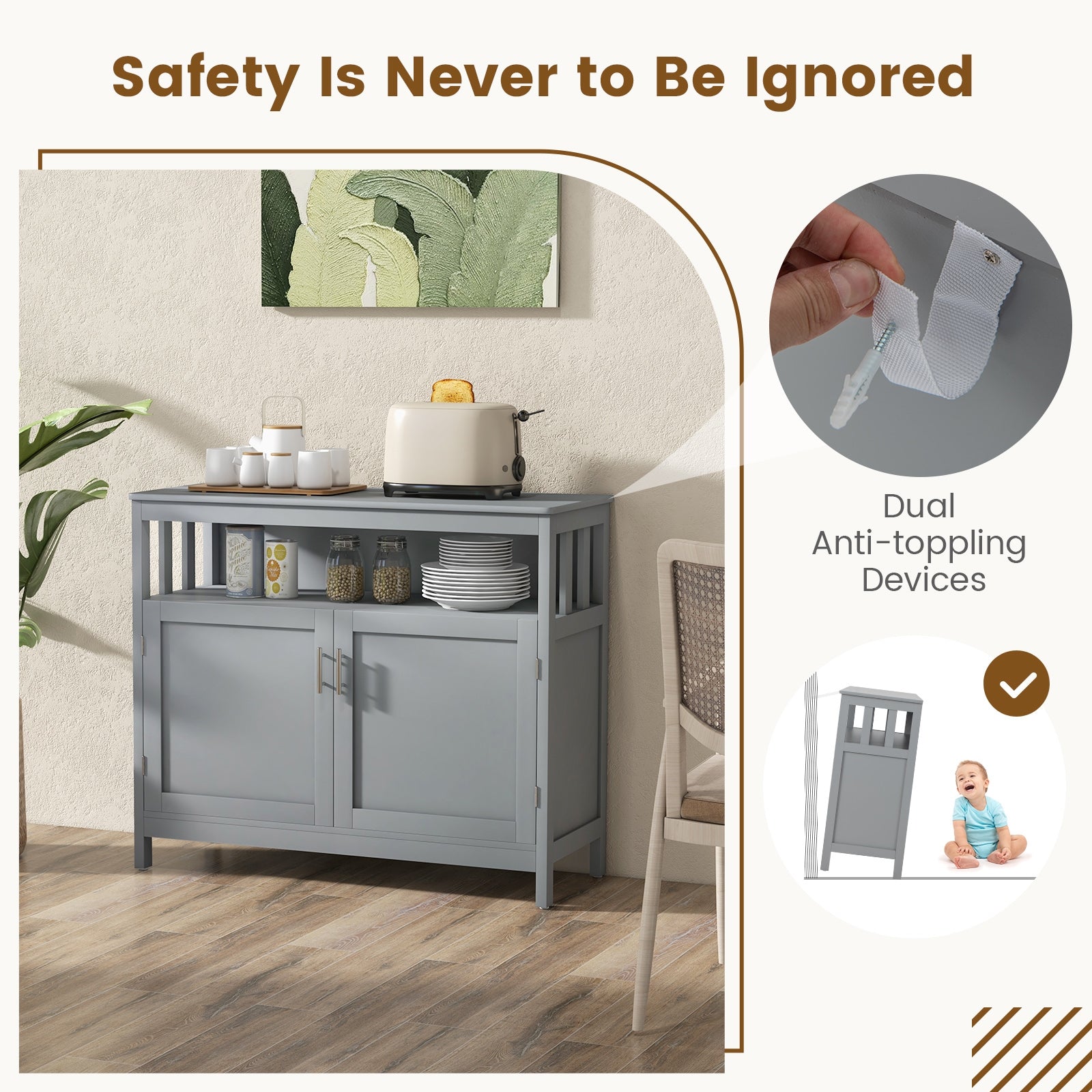 Kitchen Sideboard Buffet Cabinet with Adjustable Shelf and Double Doors for Dining Storage - Grey