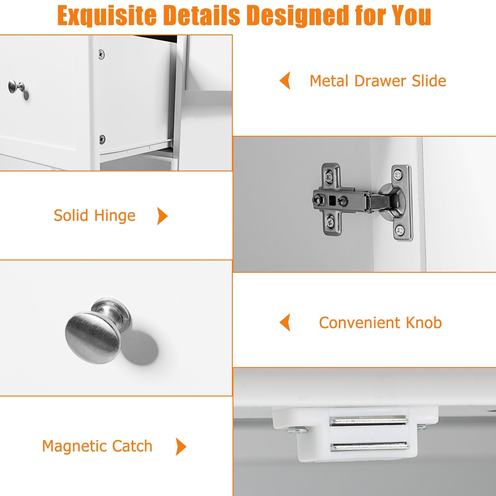 Large Bottom Cabinet with Adjustable Shelves and Drawers: The bottom cabinet provides ample storage space with three adjustable shelves to customize storage based on your needs. Three smooth metal slide-out drawers help classify and organize kitchen essentials efficiently.