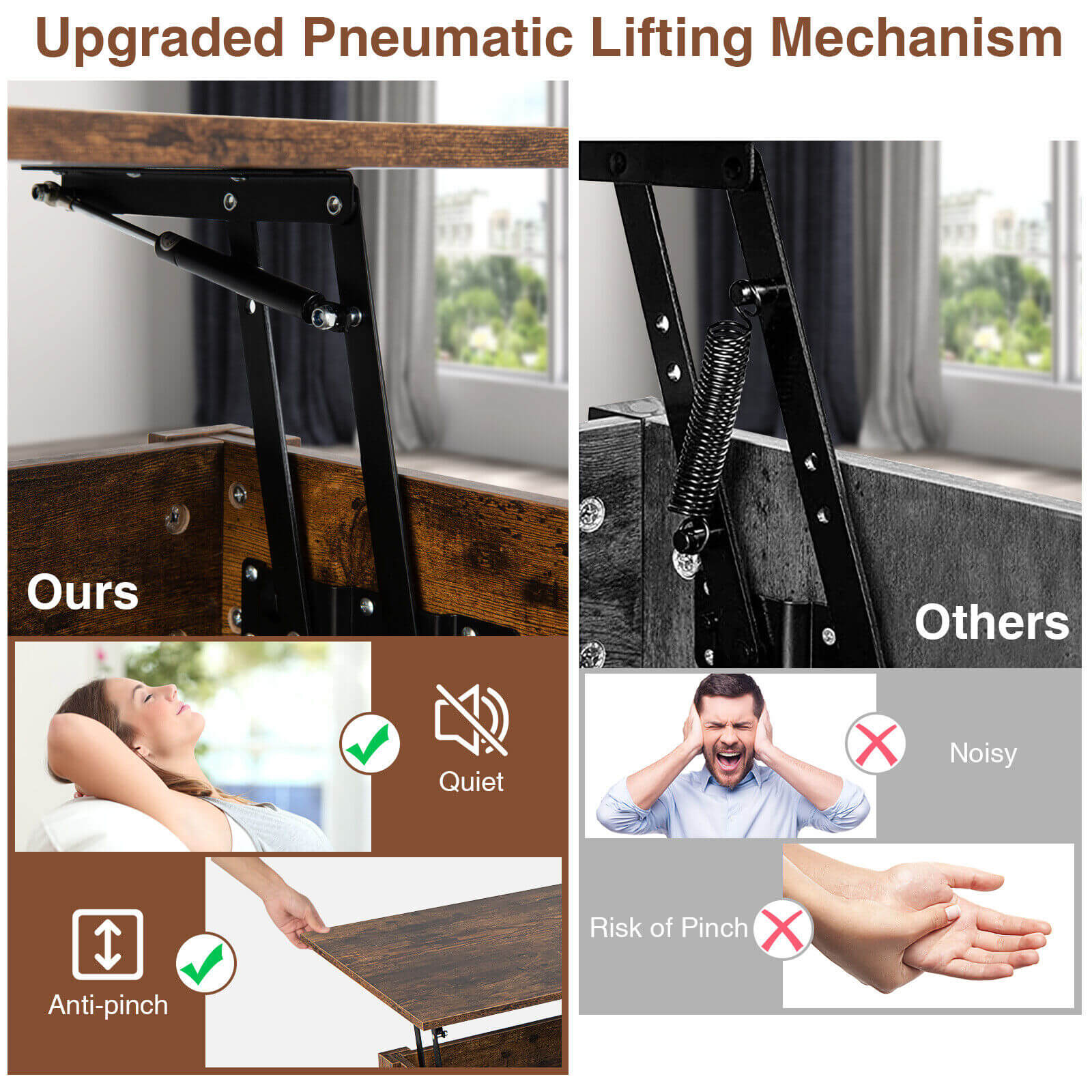 Smooth Pneumatic Lifting Mechanism: Equipped with upgraded pneumatic rods, the table lifts quietly and smoothly. Unlike traditional spring systems, this mechanism minimizes noise and reduces the risk of pinching for a safer experience.
