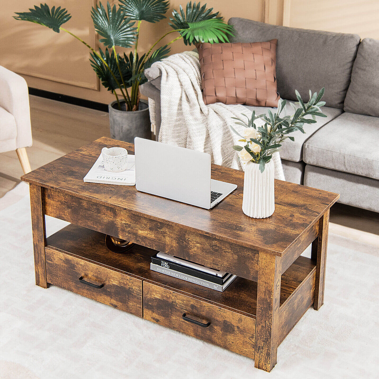 Lift Top Coffee Table with Hidden Storage Compartment and Dual Drawers